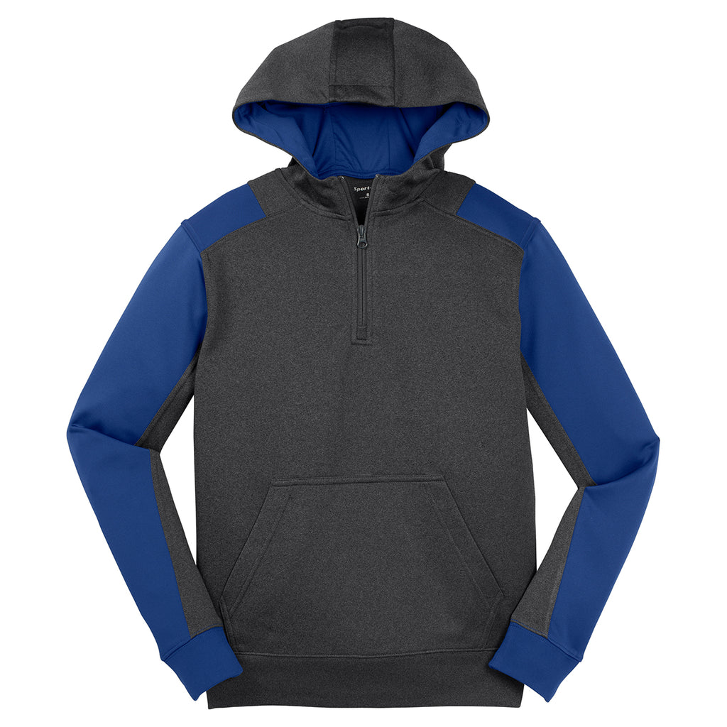 When the mercury goes down, your layering needs to go up. You know what we mean by layering, right? Take the Sport-Tek Men's Graphite Heather/True Royal Tech Fleece Colorblock 1/4-Zip Hooded Sweatshirt. This is a comfortable and durable layering item that you can use to gift your employees with warm and fashionable clothes to wear around the workplace. Just add your custom logo to the front and you've created something branded specifically to your company.Highlights