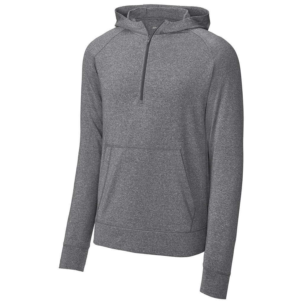 Sport-Tek Men's Charcoal Grey Heather Sport-Wick Stretch 1/2-Zip Hoodie