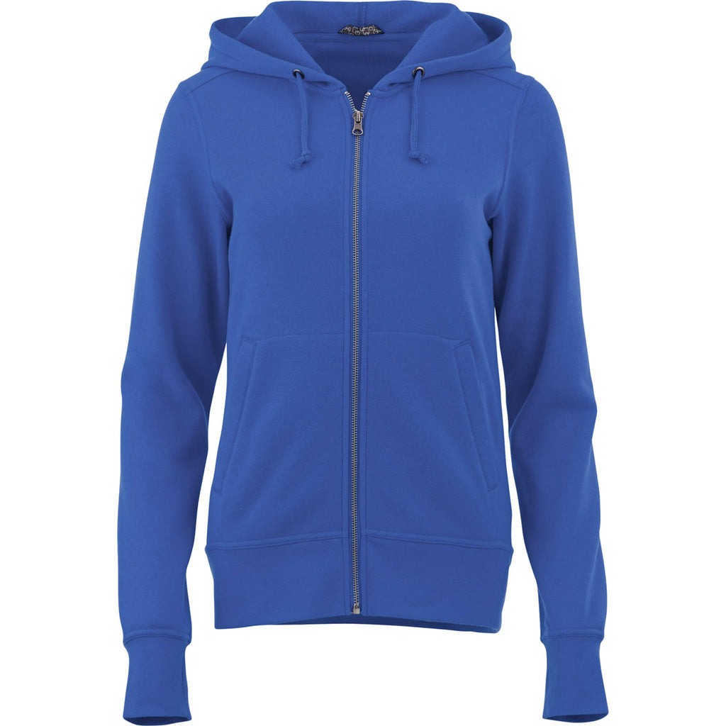 Corporate promotion in a winter means its time for hoodies in warm colors that help to pull the wearer's look together in an effortless manner. Custom logoed hoodies are a popular-priced medium to advertise your company or business because they are staple pieces of a winter wardrobe. Designed to inject energy into workout casual repertoire with all the warmth and without the bulk, this Elevate Women's New Royal Cypress Fleece Zip Hoody is crafted from a comfy cotton-poly blend. It features exclusive branding opportunities, including an area to add your logo inside the back yoke and tear-away label, allowing you to create a special custom giveaway gift. Create a fantastic winter giveaway and spread awareness of your brand by customizing this hoodie with your company's logo.Corresponding Men's Style:Elevate Men's New Royal Cypress Fleece Zip Hoody