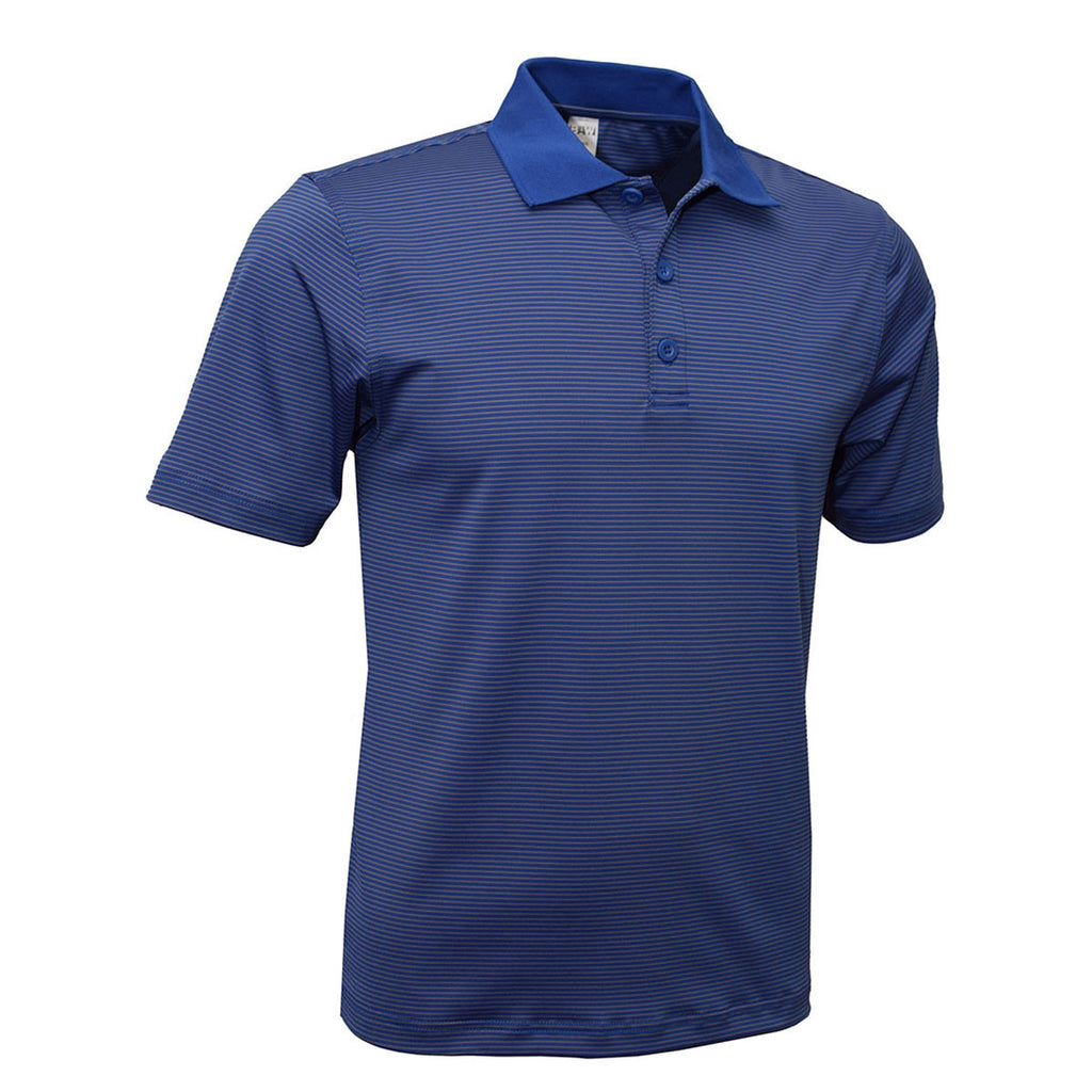 Polos have been a shirt of choice ever since the country went from casual Friday's to casual every day. If a polo is a stock item in your company store or a give-away for a corporate golf outing, you may want to try a new trick. The BAW Men's Royal Mini Stripe Spandex Cool Tek Polo is special because it is made of polyester and spandex. It retains its shape so your logo always looks the same as the day is was put on the front. Like all polos it has a three-button placket with color matching buttons and side vents. This shirt is available in many conservative colors and sizes range from S to 5X.Corresponding Women's Style: BAW Women's Royal/Charcoal Mini Stripe Spandex Cool Tek Polo