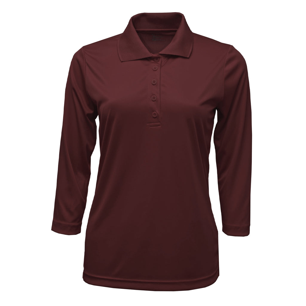 How many times have you heard that sleeves are too short or too long? If you have a company store or want to give women customers a garment that is practical as well as attractive, then consider our BAW Women's Maroon Xtreme Tek 3/4 Sleeve Polo. This polyester version has a front placket with five buttons that are the same color as the shirt. Your custom logo will be well placed on this polo that will become a favorite of the ladies. They will appreciate the fabric that has fresh assurance with an anti-bacterial treatment. There are many fashionable colors in sizes XS to 3X.Corresponding Men's Style: BAW Men's Maroon Xtreme Tek Long Sleeve Polo