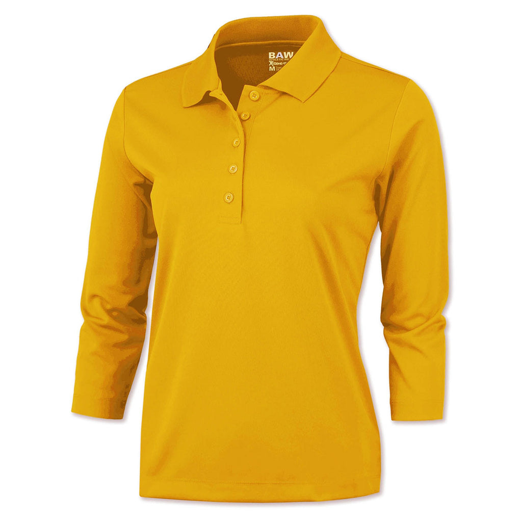 How many times have you heard that sleeves are too short or too long? If you have a company store or want to give women customers a garment that is practical as well as attractive, then consider our BAW Women's Gold Xtreme Tek 3/4 Sleeve Polo. This polyester version has a front placket with five buttons that are the same color as the shirt. Your custom logo will be well placed on this polo that will become a favorite of the ladies. They will appreciate the fabric that has fresh assurance with an anti-bacterial treatment. There are many fashionable colors in sizes XS to 3X.Highlights