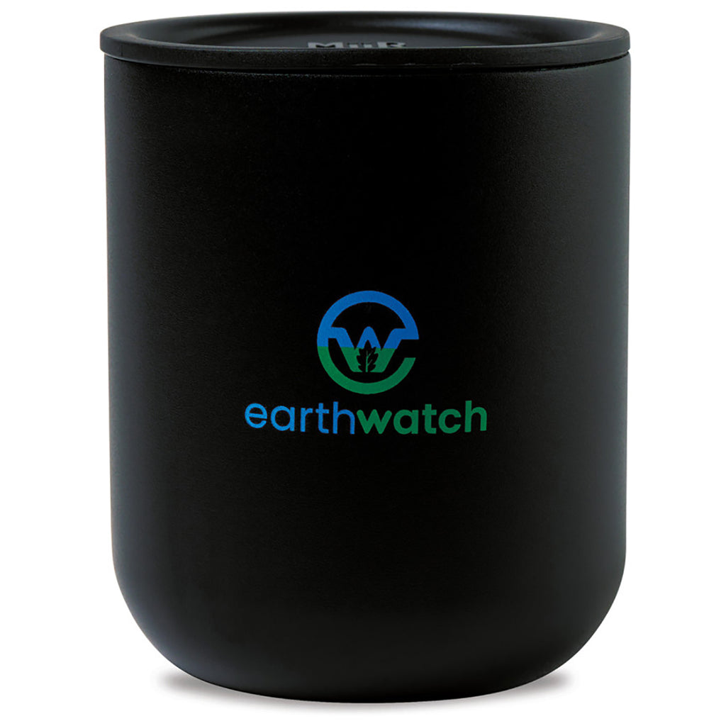 Your company's custom logo will always make a statement when added to the sleek exterior of this MiiR Black Powder Climate + Tumbler - 12 Oz. Made from recycled materials, this eco-friendly tumbler's double-walled insulation and high-quality stainless steel ensure that your drink remains at the perfect temperatures for hours at a time.