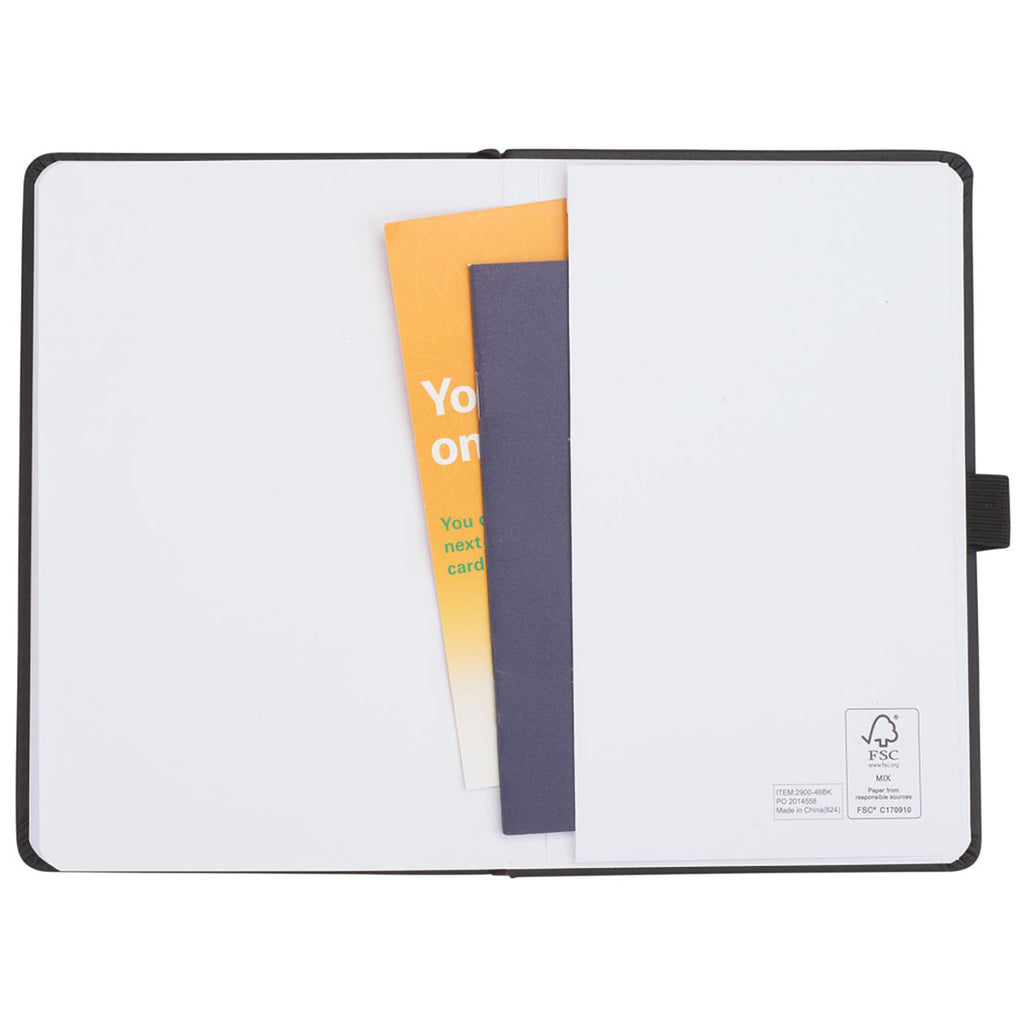 Order the JournalBooks Black Mix Pineapple Leather Bound Notebook for a unique and sustainable notebook for the office. Made of 30% repurposed pineapple components. Comfortably take notes during meetings in a great-looking notebook for a reasonable price. Available with a debossed logo.