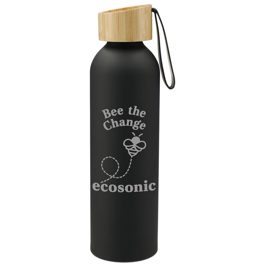 The Bullet Black Ryze Aluminum Sports Water Bottle 22 oz with FSC Bamboo Lid is a sporty, stylish water bottle that will always make a statement. Create an unforgettable promotional accessory by adding your company's custom logo or design to the sleek exterior. An included silicone strap provides extra portability.