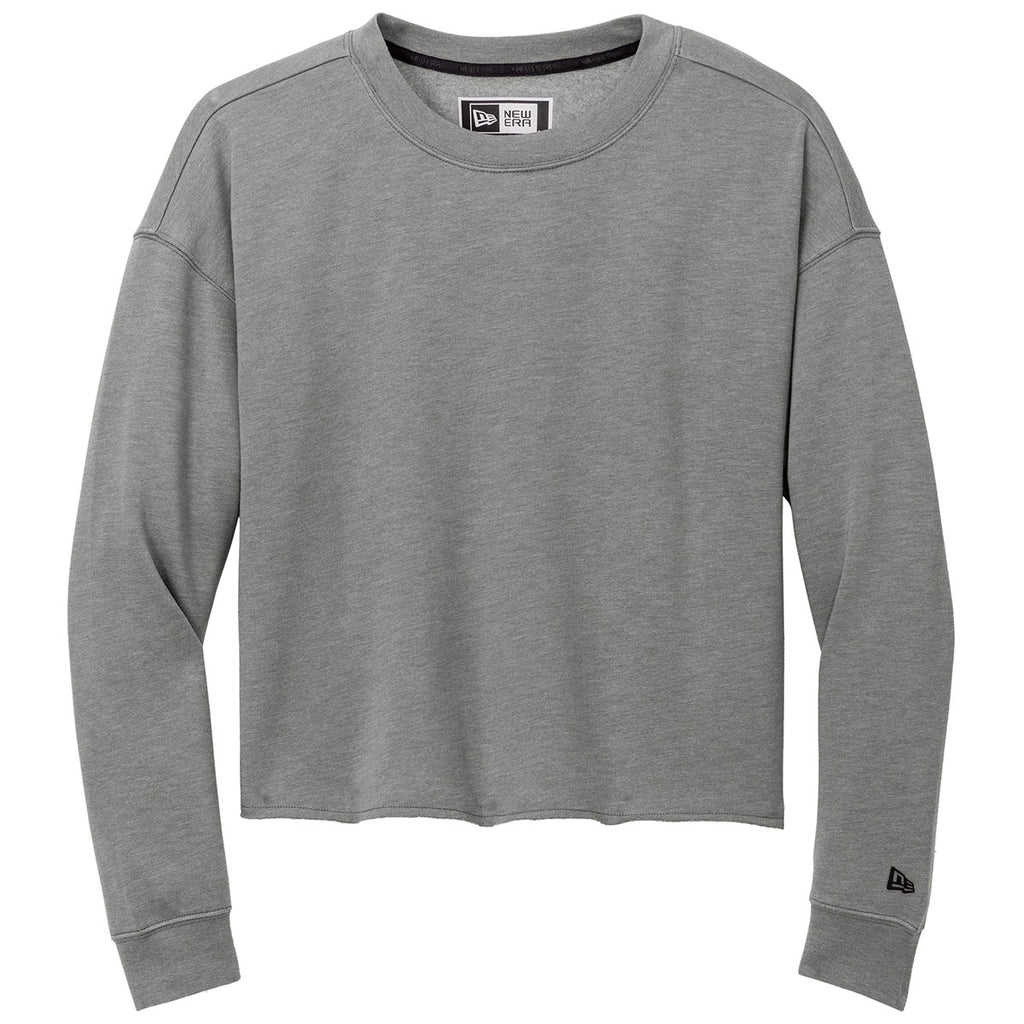 The ladies on your team will love showing off your company's custom logo when it's added to the front of the New Era Women's Shadow Grey Heather Tri-Blend Fleece Crop Crew. A slightly cropped cut gives this luxuriously soft long-sleeved tee a contemporary look that is currently trending.