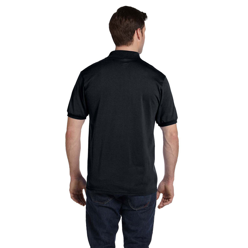 Hanes Men's Black 5.2 oz. 50/50 EcoSmart Jersey Knit Polo