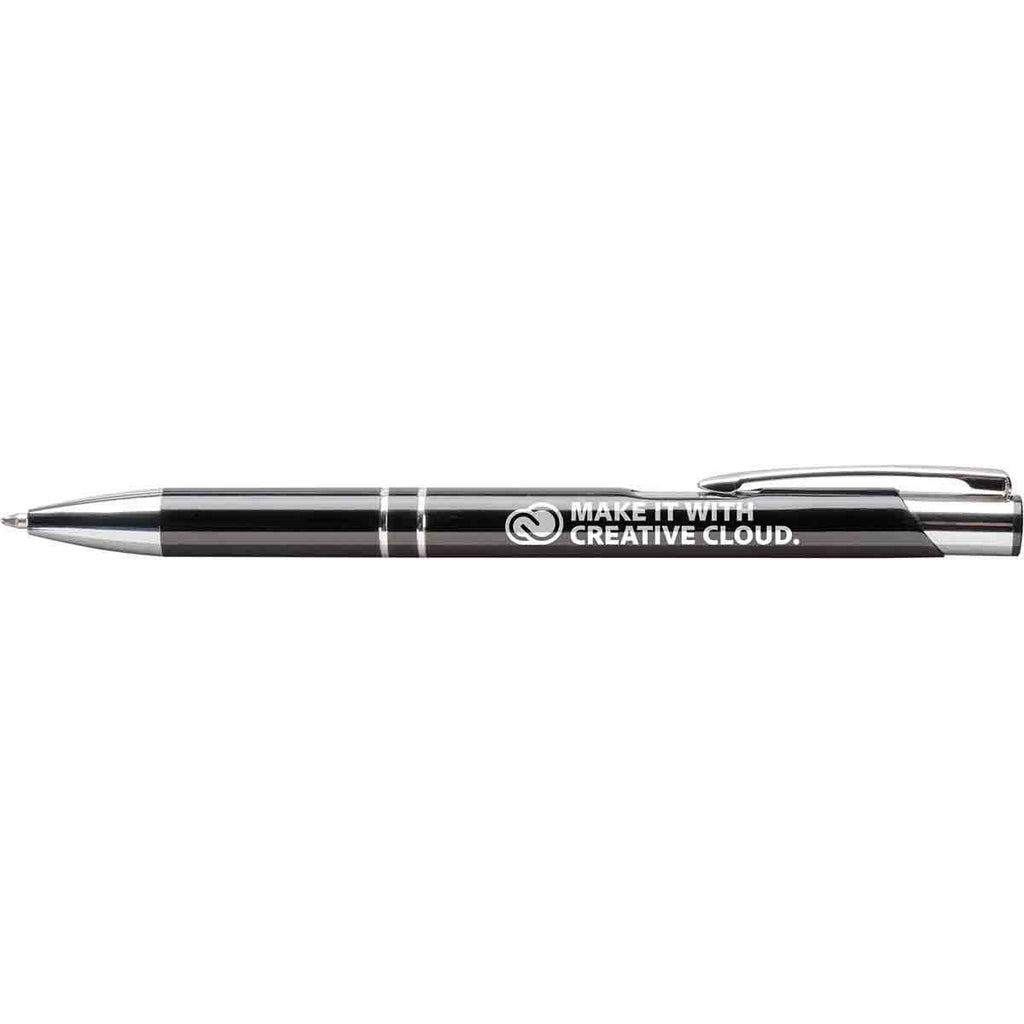 Push retractable action ensures you always see a tip pop out of this popular Hub Pens Black Sonata Glass Pen featuring blue ink. The highly durable tip delivers even applications of ink to prevent splotches from making your handwritten notes unrecognizable. Hub Pen ink also never bleeds into paper or other types of writing surfaces. Attach your company logo to attract the interest of customer prospects.
