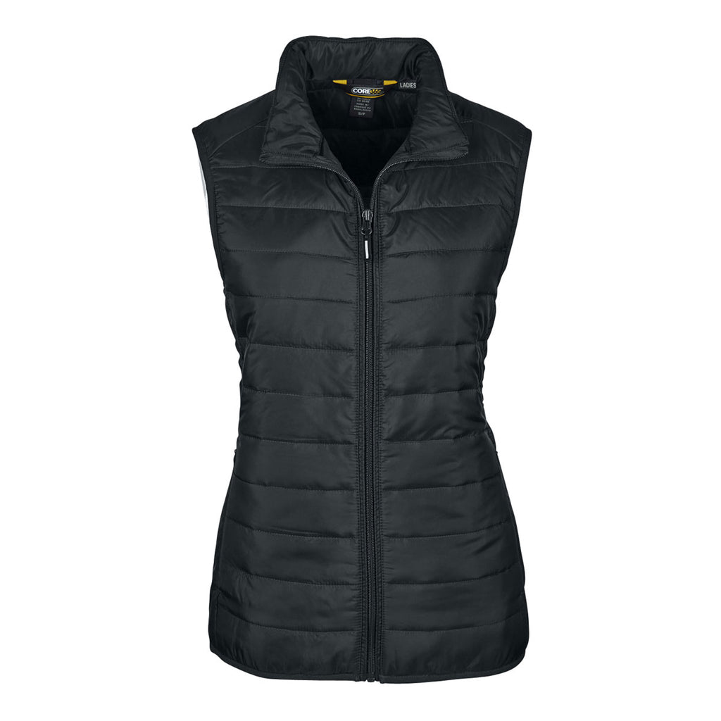 Crafted to meet the needs of outdoorsy women, Core 365 Women's Black Prevail Packable Puffer Vest boasts 100% polyester body and lining. Lightweight yet durable, it wards off chill and packs down to a compact carrying size. With an auto-lock zip-up front and pockets, it pulls double-duty as both a comfy layer and one that protects you from unpredictable weather. Stretch binding at armholes and hem locks in warmth. Custom clothing is a proven strategy to build brand trust and this ladies vest sporting your company's logo means you're one step closer to building corporate image and identity.Corresponding Men's Style:Core 365 Men's Black Prevail Packable Puffer Vest