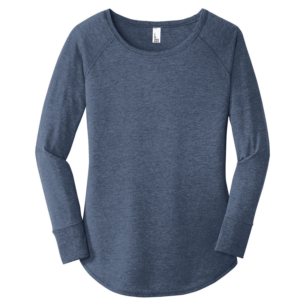 Turn heads at the next professional networking event by wearing the custom logoed District Women's Navy Frost Perfect Tri Long Sleeve. With all eyes on you, display the corporate logo attached on the large imprint area. Stylish fashion combines with supreme comfort to place the long sleeve tunic on every professional female's must have corporate apparel list. The lightweight design includes polyester and rayon to ensure long lasting durability. Soft cotton blends with polyester and rayon to help the tunic achieve the ultimate in softness. The curved hem and rib knit cuffs present a refined look that lets everyone know you have things under control.Corresponding Men's Style: District Made Men's Navy Frost Perfect Tri Long Sleeve Crew Tee