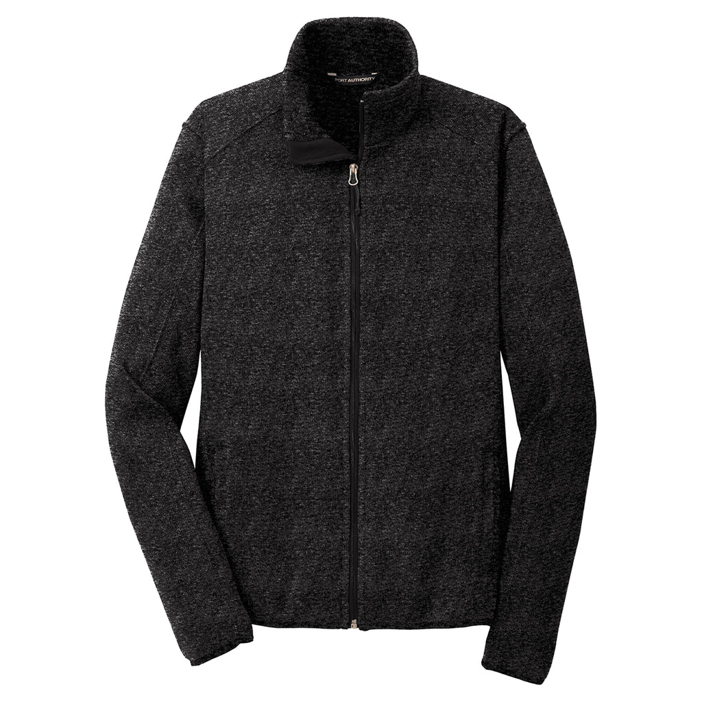 Port Authority Men's Black Heather Sweater Fleece Jacket