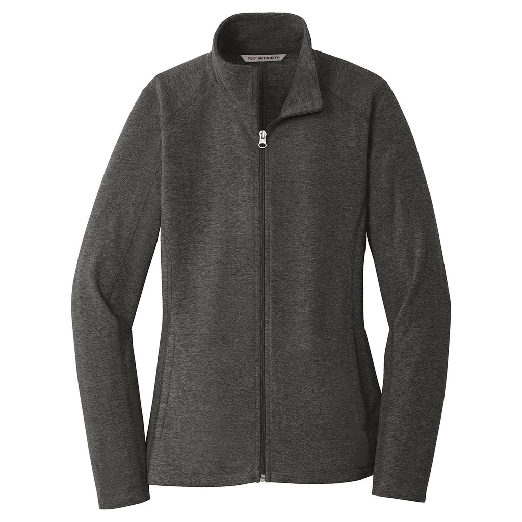 Port Authority Women's Black Charcoal Heather Microfleece Full-Zip Jacket