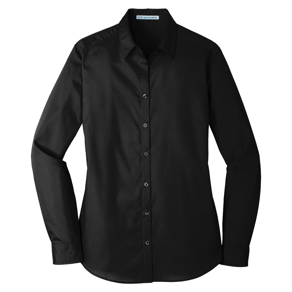 Port Authority Women's Deep Black Long Sleeve Carefree Poplin Shirt