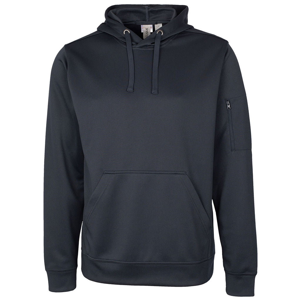 The Clique Men's Navy Lift Performance Hoodie Sweatshirtoffers a stylish look and extreme comfort for the wearer to enjoy. With a company logo added in screen print, you can personalize this sweatshirt to show off your company name to the masses. Hand this corporate apparel item out at golf events or recruiting events or you can give it to your loyal employees as a gift. Some of the tempting features of this hoodie sweatshirt include a variety of classic colors to choose from, 100% polyester interlock fabric, attached hood with drawstrings, kangaroo pocket with interior cell phone pocket, left sleeve zip pocket, and self-fabric banded cuffs and hem.Highlights