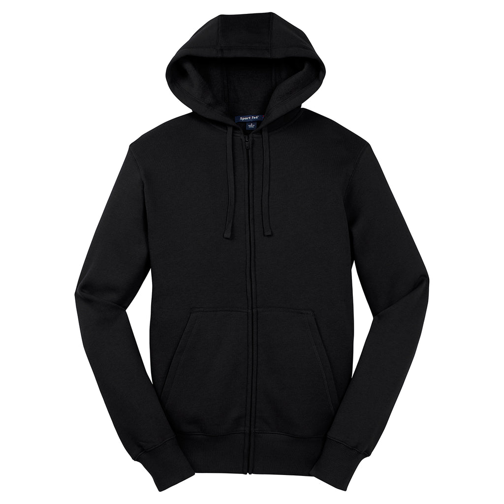 Simple, sporty, and comfortable enough to wear even when you feel like sitting on the couch, the Sport-Tek Men's Black Full-Zip Hooded Sweatshirt is a must-have in your casual wardrobe. Not only is the 9-ounce, 65/35 ring spun combed cotton / poly fabric about as comfortable as fabric gets, but this sweatshirt has enough on-point details that you'll feel great wearing it out and about as well. The set-in sleeves, the subtle front pouch pockets, the rib knit cuffs and hem all of these ingredients add up to a full-zip sweatshirt you'll want to wear everywhere. And speaking of everywhere: with your corporate embroidery emblazoned on the front, you can also represent your brand everywhere.