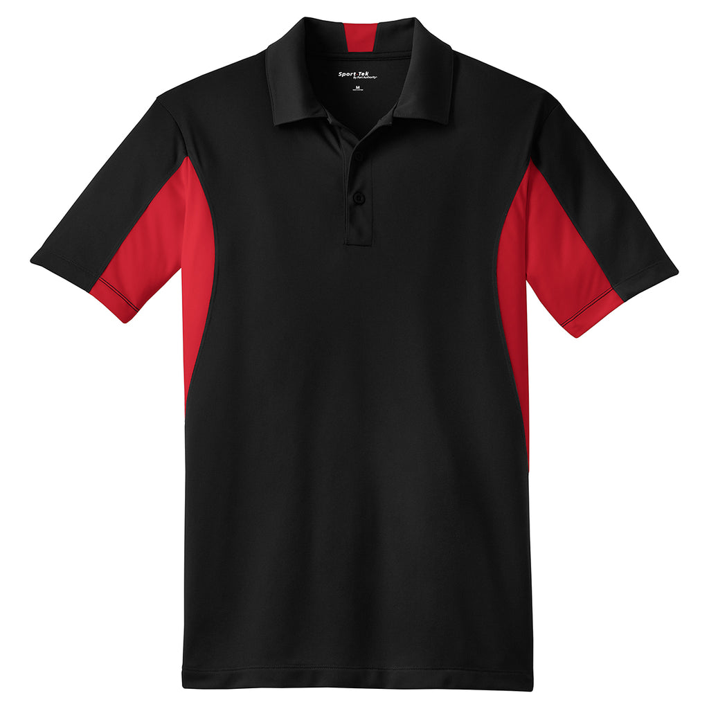 Sport-Tek Men's Black/ True Red Side Blocked Micropique Sport-Wick Polo