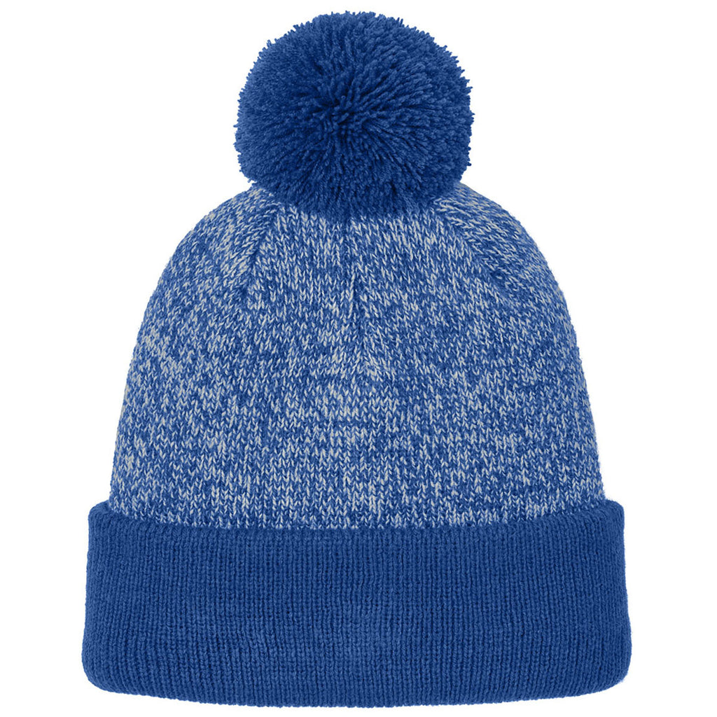 Sport-Tek True Royal/Silver Halftime Heather Pom Beanie