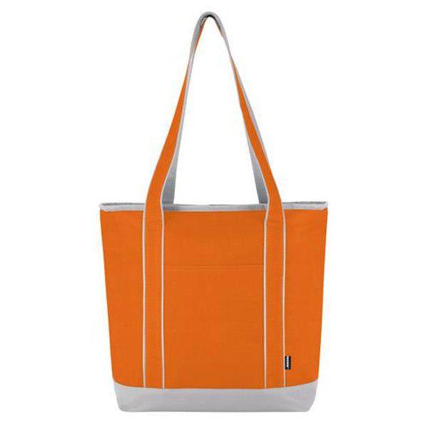 Pack your lunch and late afternoon snacks inside of the Koozie Orange Lunch Time Kooler Tote. Trips to a nearby park for an hour away from work have become much easier to take because of the large main zippered compartment that keeps all of your favorite foods fresh. Bring the rugged tote to the outdoor market for convenient storage of fresh produce. The heat-sealed PEVA liner maintains the flavor integrity of fresh fish and poultry. Place your smartphone inside of the front slip pocket to take important business calls during noontime breaks. Increase recognition of your company by attaching a custom logo to the side of the tote.