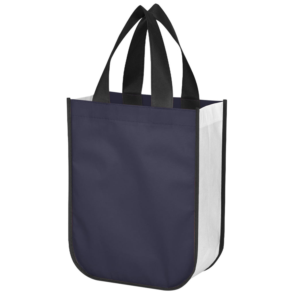 Be eco-conscious with a custom Hit Navy Shiny Non-Woven Shopper Tote Bag. This simple shopper tote is available in a variety of colors to fit your needs. The tote is the perfect size for a quick trip to pick up ingredients for your next meal. The boxy bottom means you have plenty of room for items, and then you can fold up the tote for easy storage.