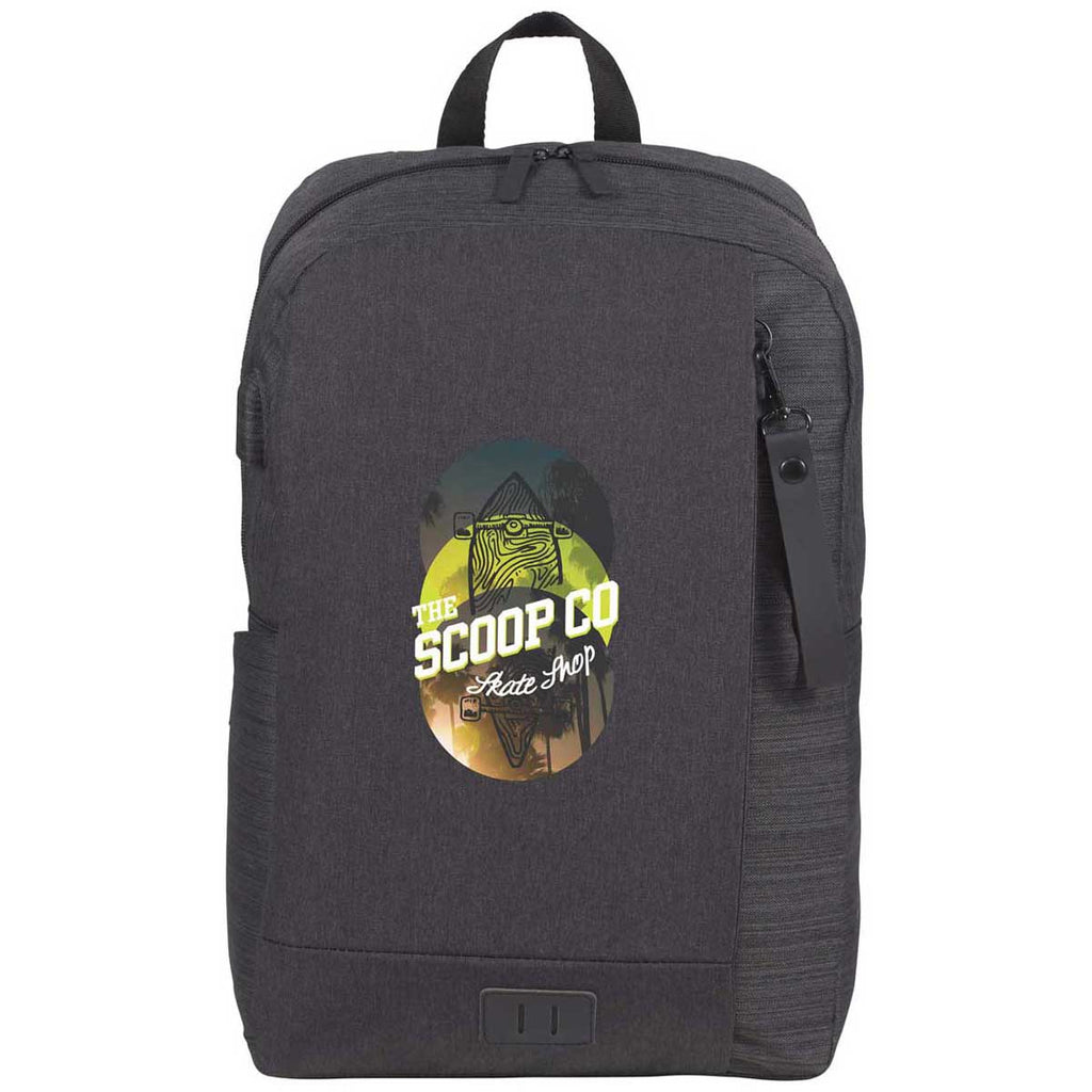 Advertise your brand using the custom Leed's NBN Charcoal Whitby Slim 15" Computer Backpack with USB Port - pair it with your company logo and you'll create the perfect branding that works great for your next recruiting event or trade show. Whitby offers the storage options and carrying convenience that you love, in a slimmer silhouette - features include a padded laptop sleeve, vinyl lash tab and padded shoulder straps and back panel.