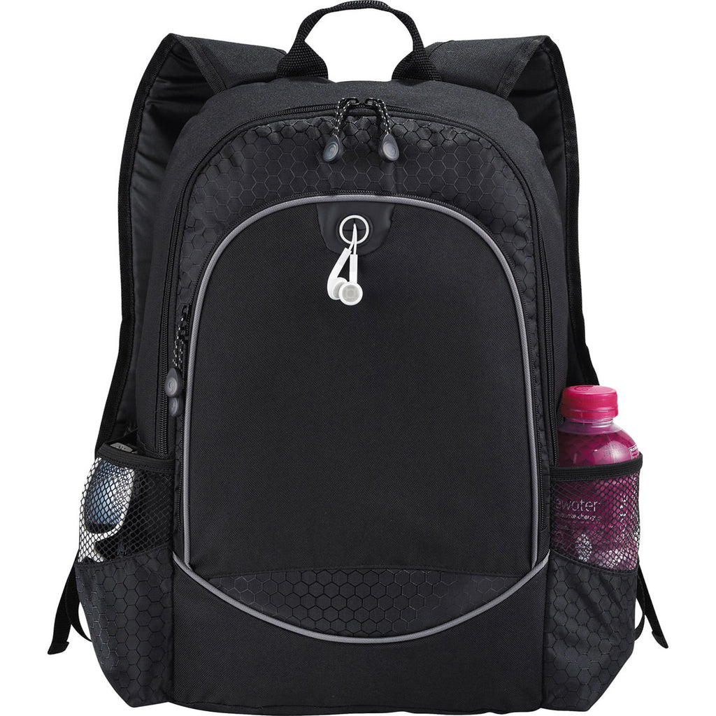 The Leed's Black Hive 15" Computer Backpack is an ideal corporate gift item for today's technology-savvy employees and clients. It features a main compartment with a laptop sleeve and padded area for an iPad or tablet. There is ample room for your company logo on the large front zippered pocket and recipients will appreciate the two side pockets that can hold small items like sunglasses or a water bottle.The minimum order for this product is 25 pieces.