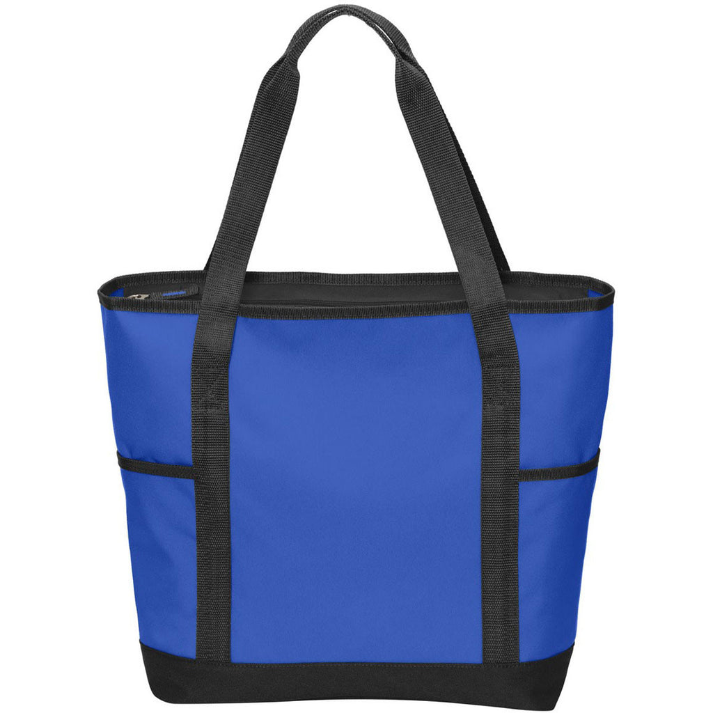Logoed corporate accessories provide you with a cost effective way to get the word out about your company. However, no other corporate accessory makes more impact on your target market than the impact made by Port Authority Royal/Black On-The-Go Tote. The corporate accessories include over-the-shoulder length web handles for carrying heavy loads through crowded office corridors. Two end pockets store all of your electronic devices. The 600-denier polyester canvas absorbs the worst punishment, as well as prevents rips and tears from prematurely ending the lifespan of the totes. Unlike most totes, Port Authority totes zip up the main compartment to protect your most important business documents.Highlights