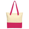 Make the embroidered Port Authority Natural/Black Colorblock Cotton Tote the go to corporate giveaway at recruiting events and trade shows. With a large imprint area on the front of the cotton tote bag, you have the ideal location to add a custom logo that generates buzz for your company in the community. At a price point that will allow to make other promotional product purchases. The versatile travel accessory comes with reinforced self-fabric color block handles and stress point stitching. Lightweight 100% cotton twill ensures your employees and customers enjoy using the stylish tote for years to come. The sleek design gives you a fashion accessory edge at trade shows.Highlights