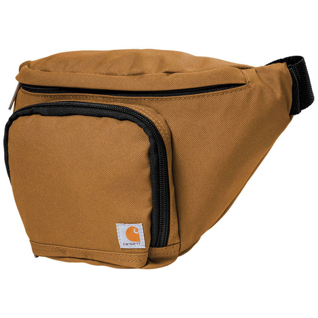 Add custom embroidery to the Carhartt Carhartt Brown Waist Pack for a custom gift that can be worn daily or when traveling for convenience. The 600D polyester waist pack has Rain Defender for outdoor wear and is perfect to carry your keys, phone, and cash. The rough and tough waist pack has a large main compartment with zippered mesh pocket and a front zippered compartment with key fob for convenience. The long webbing-belt has a side release buckle for easy release around your waist or across the body.