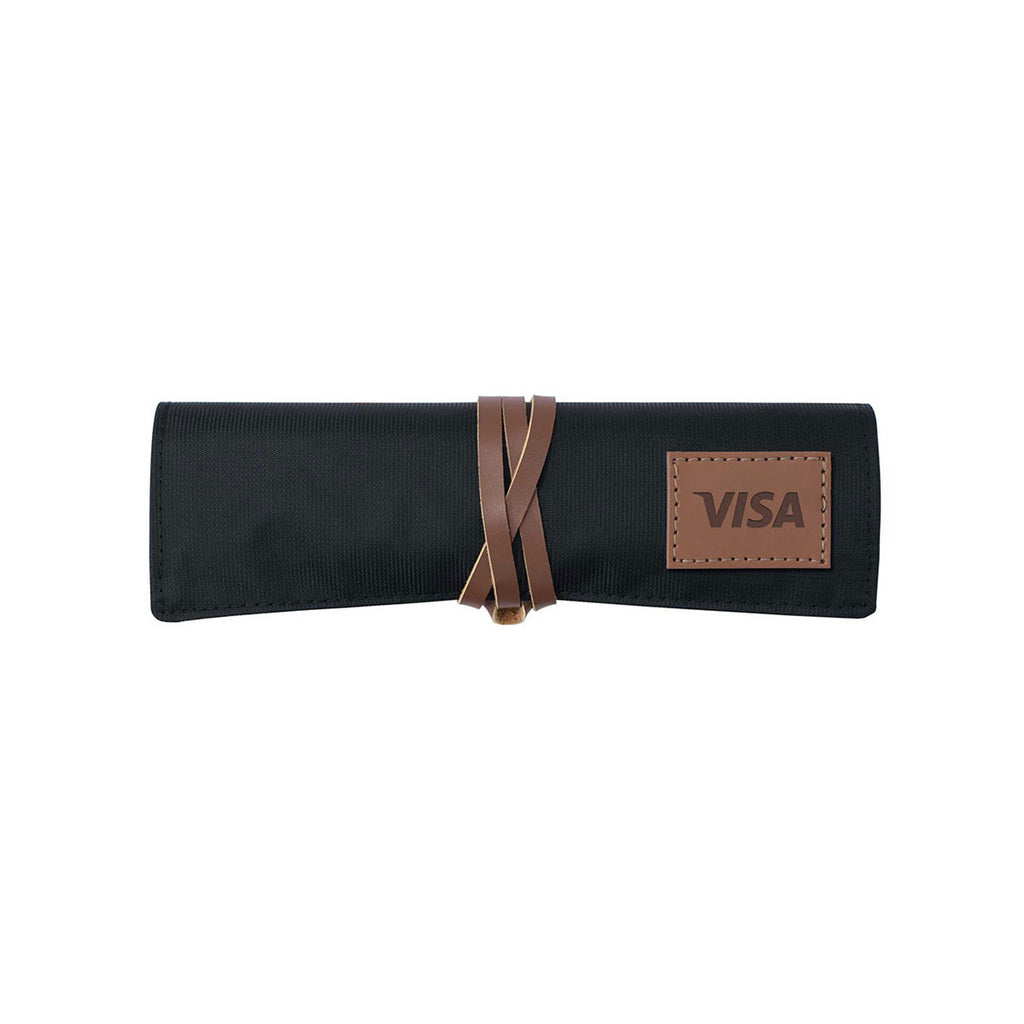 Partner with the Origaudio Black Ruckman Roll to create a practical corporate giveaway with your logo! It helps your employees to keep tech essentials and jewelry items safe and secure at home or on the go thanks to sturdy roll-up design for effortless storage and convenient carrying.Highlights
