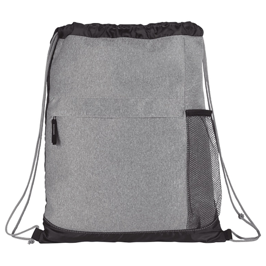 Upgrade your offerings with the stylish and practical Heather Melange Drawstring Bag. Made from durable polyester, this bag features an open main compartment with a cinching drawstring closure for easy access and secure storage. The front pocket with a zipper closure provides additional space for small essentials, while the side mesh pocket keeps your water bottle handy. Designed with a child-friendly design, this bag is perfect for all ages.