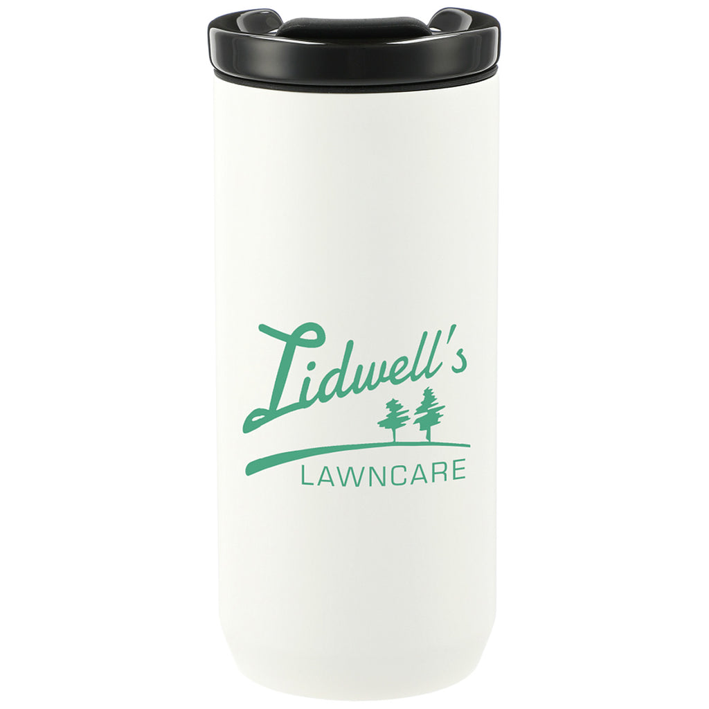 The Leeds White Seneca Tumbler 16oz with Ceramic Lid & Lining is a perfect gift or giveaway item for customers, clients, and colleagues alike. Add your company's custom logo to the stylish matte exterior to create a branded item everyone will have use for. Special insulation keeps both cold and hot liquids at ideal temperatures for up to 24 hours.The minimum order for this item is 24 pieces.