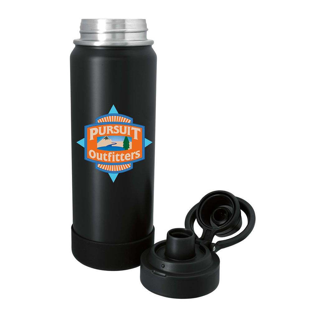 Choose a custom logo for the Koozie Group Black Bravely Vacuum Sport Bottle - 24 oz to make sure you stay hydrated while on the go. Whether hiking through the woods, heading out on your bike, or just walking into the office, this is the water bottle for you. The built-in hanger makes it easier to keep at hand. Place an order today.The minimum order for this product is 48 pieces.