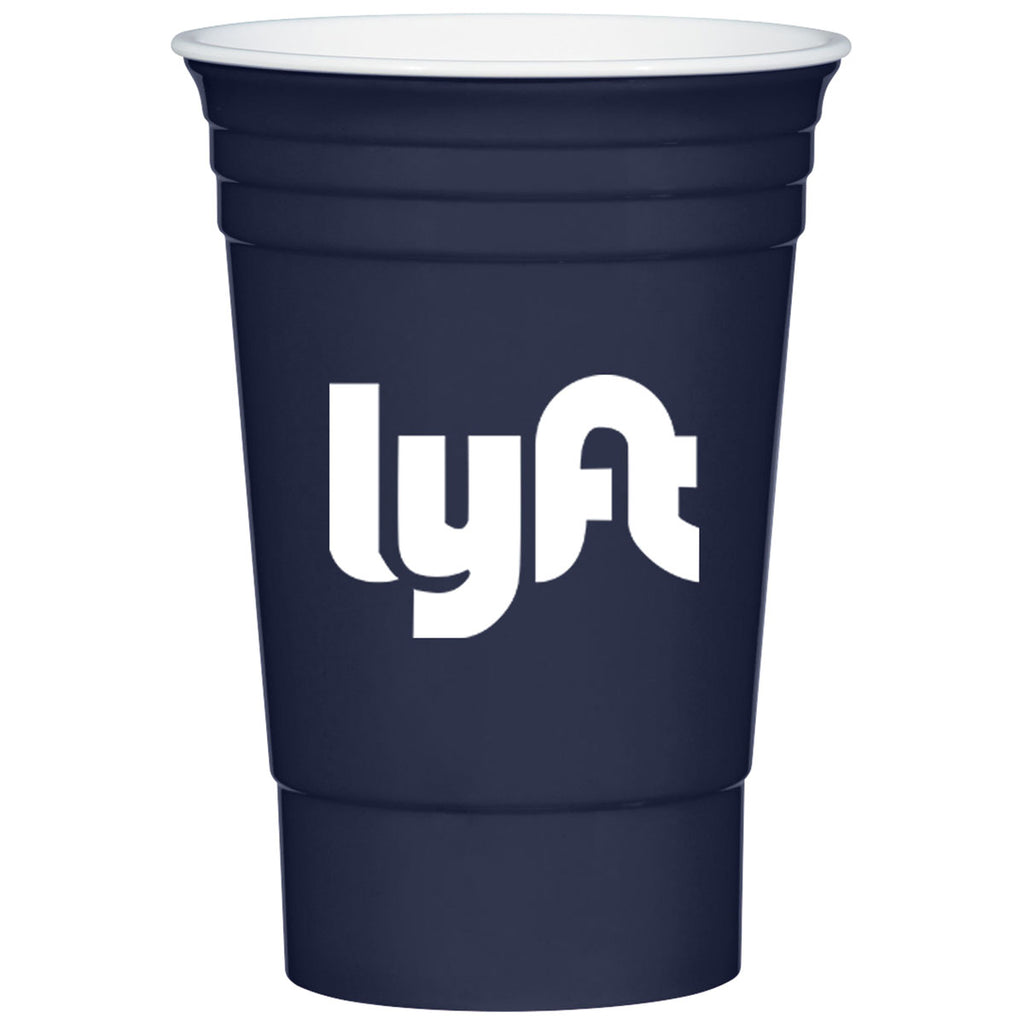 Hit Navy/White The Cup with a custom logo will keep your party going. This silkscreen custom cup is perfect for big events like receptions, family reunions, or tailgating, so everyone knows the host or sponsor. The large 16-ounce size is sturdy, reusable, and available in various color options. Serve your signature drink, or let people choose their own to keep the fun going.