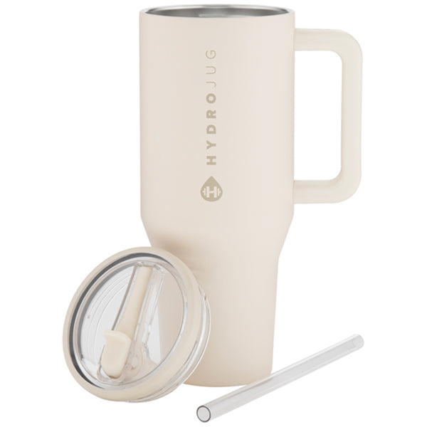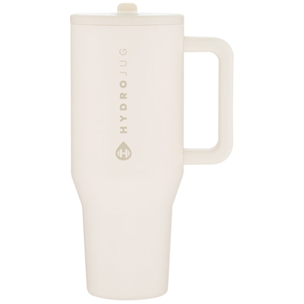 Choose a corporate design for the HydroJug Cream 32oz Traveler to make sure your time on the road keeps you well hydrated. Simple fill with your favorite beverage, screw-on the threaded lid, and enjoy sips with the soft straw. The cup holder-friendly design and side handle make this easy to handle, even in the car.Highlights