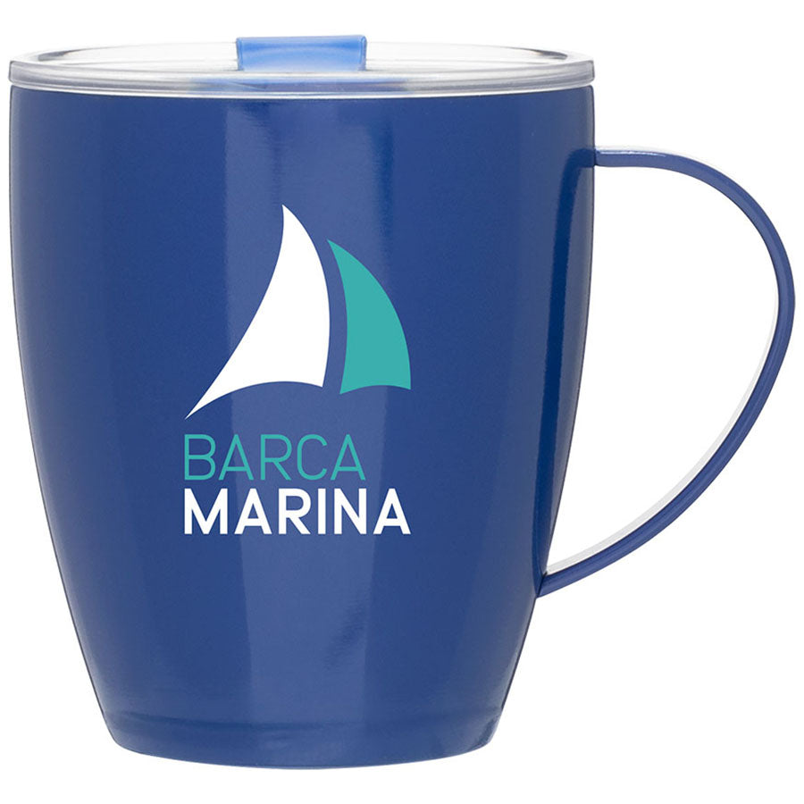 Treat your team to a customized coffee mug in the morning by adding your company's custom logo to the ETS Navy 23 oz Haus Mug. Bright colors allow you to select a style that shows off your brand's unique point of view. It also comes complete with clear acrylic push-on lid for enhanced portability.