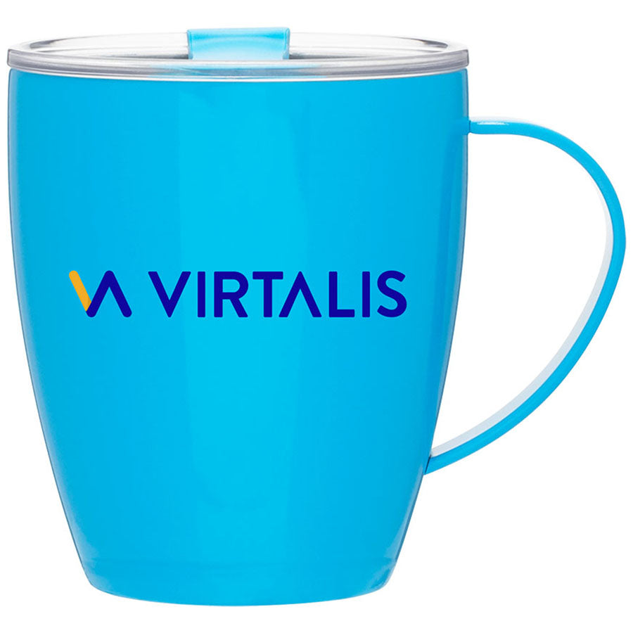 Treat your team to a customized coffee mug in the morning by adding your company's custom logo to the ETS Aqua 23 oz Haus Mug. Bright colors allow you to select a style that shows off your brand's unique point of view. It also comes complete with clear acrylic push-on lid for enhanced portability.