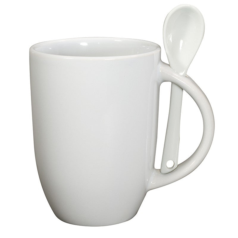 Primeline White 12 oz. Dapper Ceramic Mug with Spoon