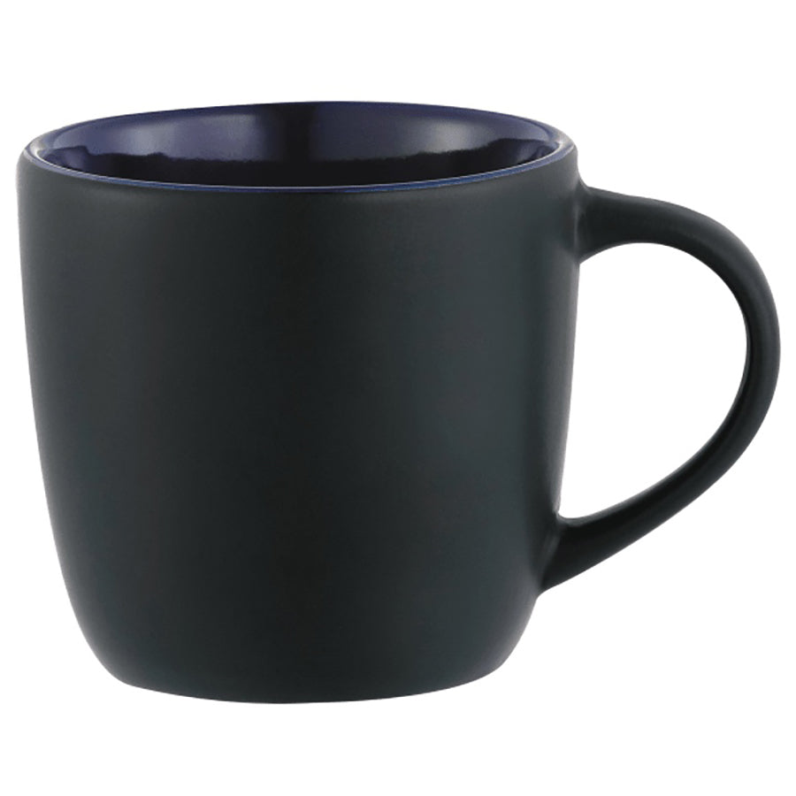 Experience your beverages in style with the Bullet Black w/Blue Lining Riviera Electric 11oz Ceramic Mug. Made from durable ceramic materials, this mug combines functionality with a contemporary design. The matte exterior contrasts beautifully with the colored high-gloss interior, creating a visually appealing piece for any kitchen or office.