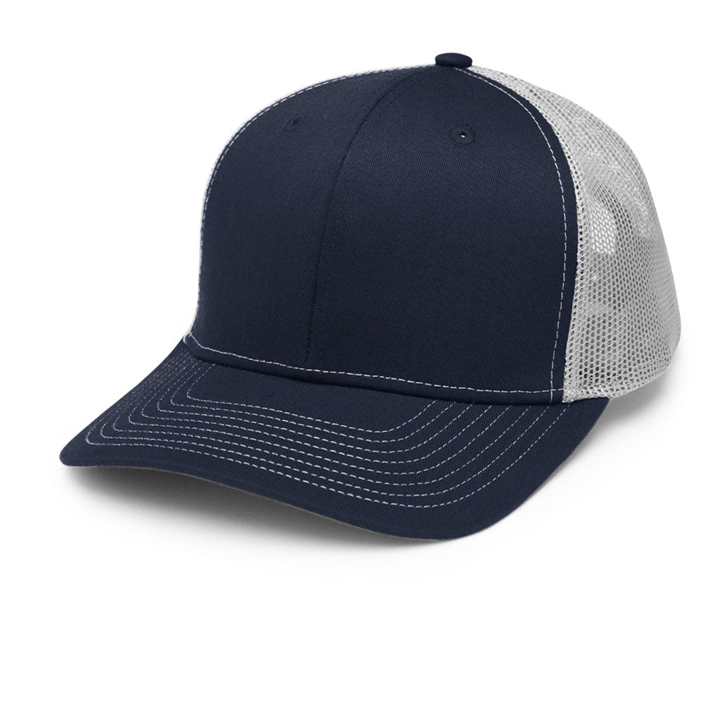 Complete your look with a custom Hit Navy with Grey Mesh The Hauler Classic Trucker cap. This iconic style cap is a crowd favorite with a 6-panel, medium profile with mesh on the back and a cotton sweatband. An adjustable plastic snap closure means this is a one-size-fits-most design that the majority can enjoy. Perfect for daily wear at work or play.