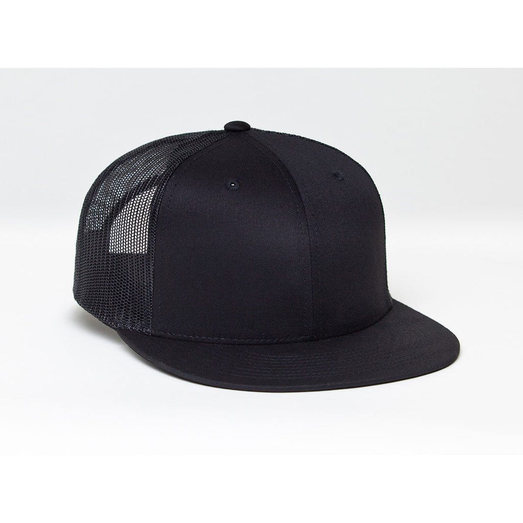 Pacific Headwear Black/Black D-Series Snapback Trucker Mesh Cap