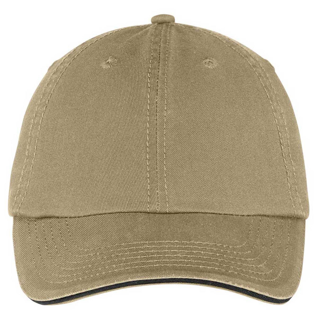 Port & Company Khaki/Black Washed Twill Sandwich Bill Cap