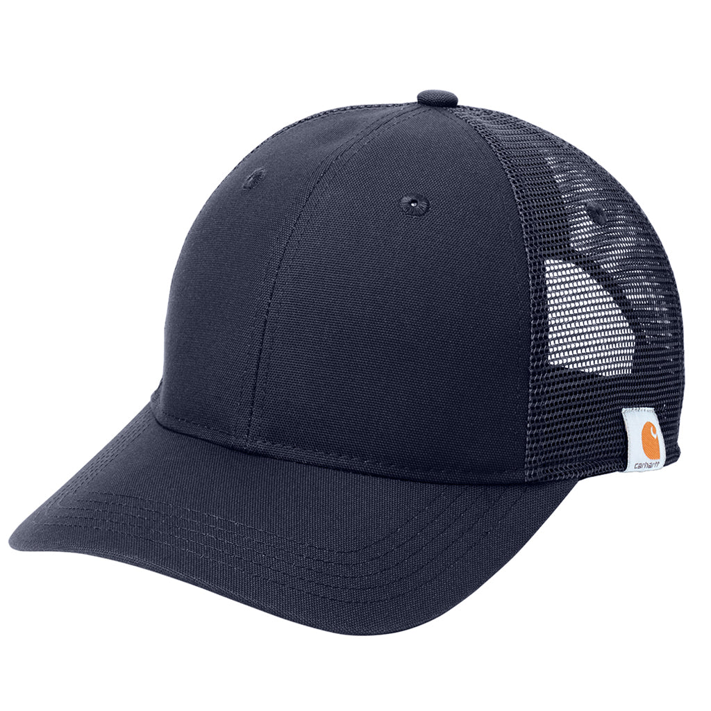 Keep your company's logo on top of the competition with the custom Carhartt Men's Navy Rugged Professional Cap. Styled with a polyester mesh back, this hardworking, rugged branded cap protects the head in everyday style. Highlights include a Carhartt Force sweatband which fends off odors and FastDry technology wicks away sweat for superior comfort during outdoor adventures. Features a structured, medium-profile design with pre-curved visor. Promotional headwear is always in style, so add your logo to this customized cap for long-lived brand impressions.