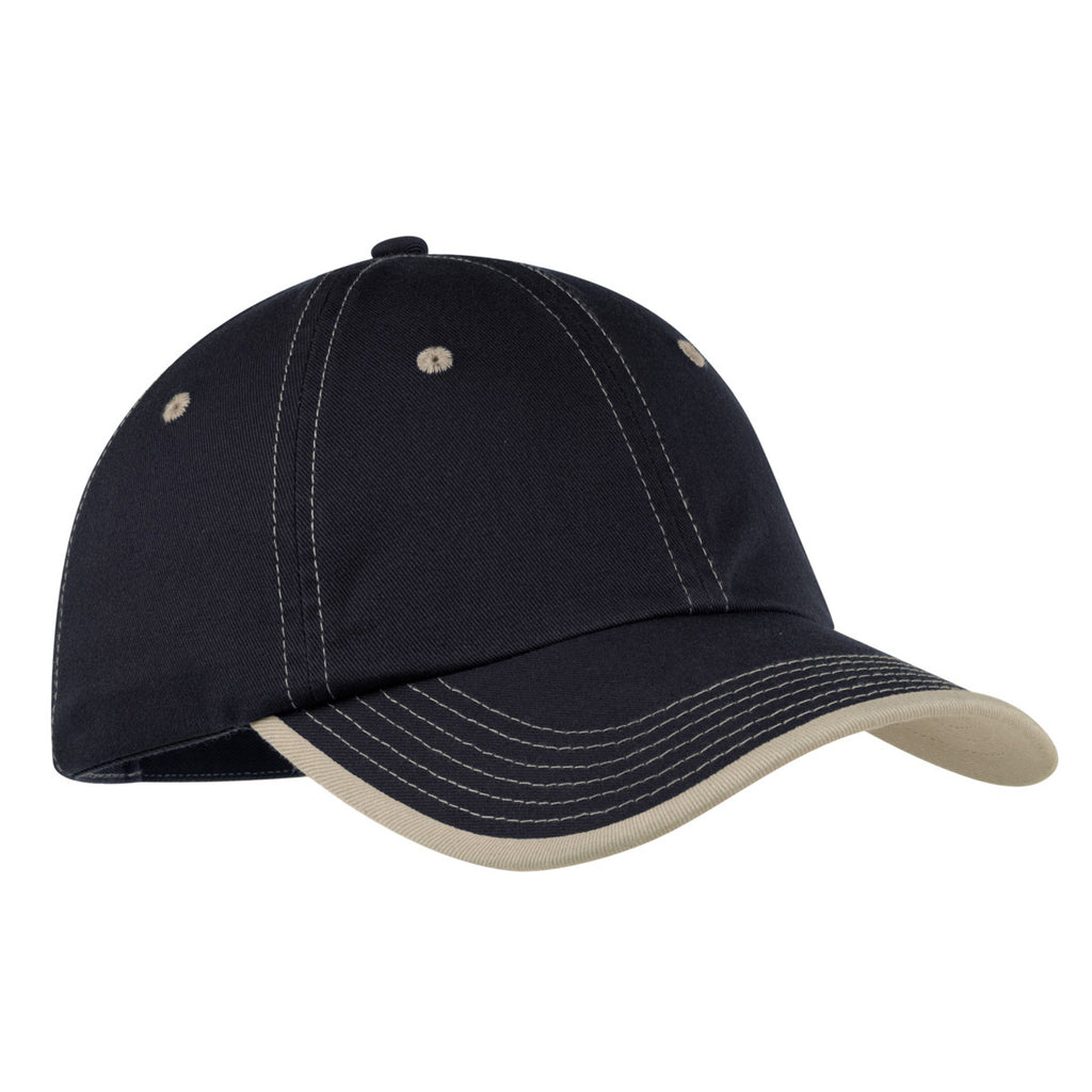 For a modern twist on a familiar look, you can't do much better than the Port Authority Navy/Light Sand Vintage Washed Contrast Stitch Cap. Not only is this cap stylish, featuring two colors and a stark contrast stitch that lines the entire cap as well as the visor, but it's just plain comfortable. That might be due to the 100% cotton twill fabric and the hook and loop closure. What's more, this cap is perfect for your company or corporate logo right on the front, since there are no discernable brand logos of its own to distract from your own brand.Highlights