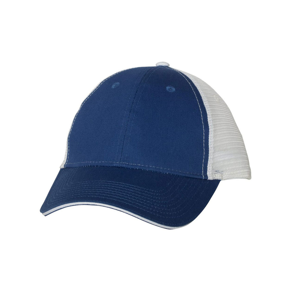 When you need headwear for a long trek cross country, put on the custom logoed Valucap Royal/White Sandwich Trucker Cap. Designed with a cotton and polyester blend, the super soft cap resists rips and tears to keep the headwear in pristine condition for years to come. One-hundred percent polyester mesh in the back of the hat helps circulate air to keep you comfortably cool. Structured six panels present a professional appearance for customers who apply their skills outdoors. The mid profile design keeps the sun out of your eyes during corporate softball games. Attach your company logo to get the word out about your products and services.Highlights