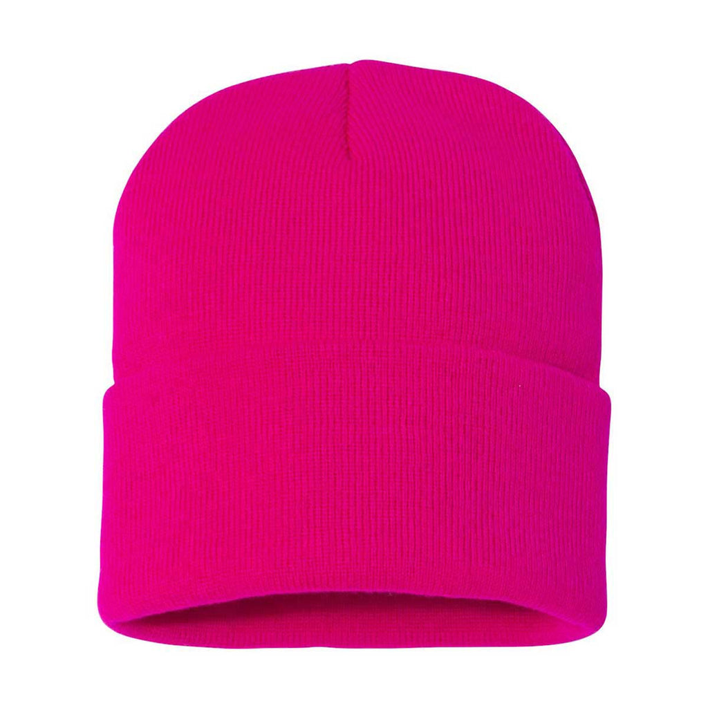 Create a custom look in multiple colors with the Sportsman Neon Fuchsia 12" Knit Beanie. Made of 100% acrylic knit, this beanie has an adjustable cuff that can be worn as you prefer. Add a company logo to use these beanies as part of employee apparel for those who need to create a look that best represents your company. Add a corporate logo and choose a bright color for those who need headwear while working outdoors. These make an ideal gift for those in your company or for fans of sporting events that want to show local team spirit.Highlights