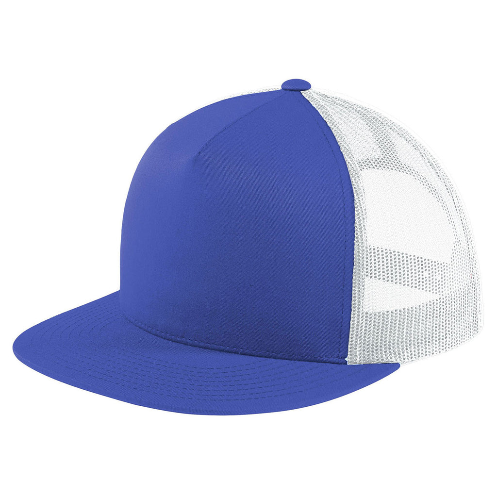 Sport-Tek True Royal/White Yupoong 5-Panel Classic Trucker Mesh Back Cap