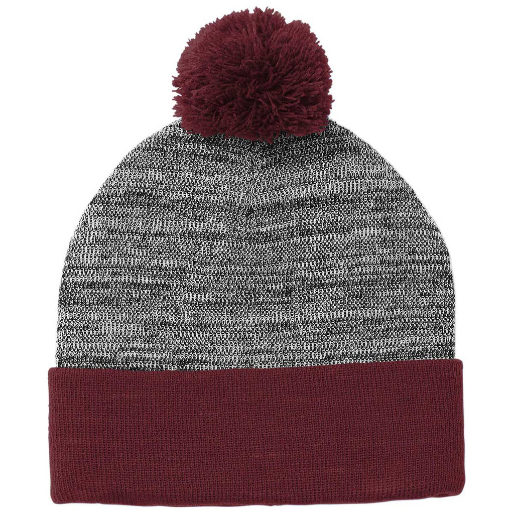 Sport-Tek Maroon/Grey Heather Heather Pom Pom Beanie