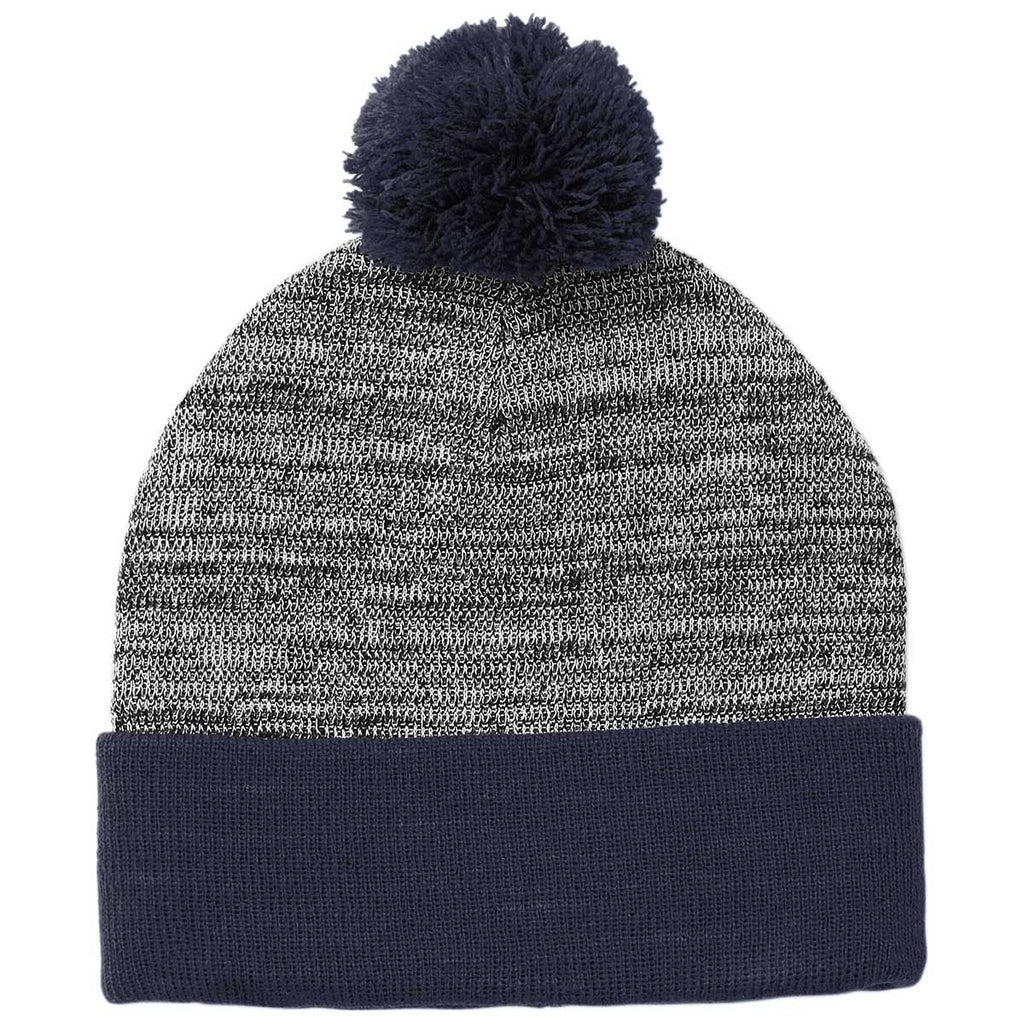 Sport-Tek True Navy/Grey Heather Heather Pom Pom Beanie