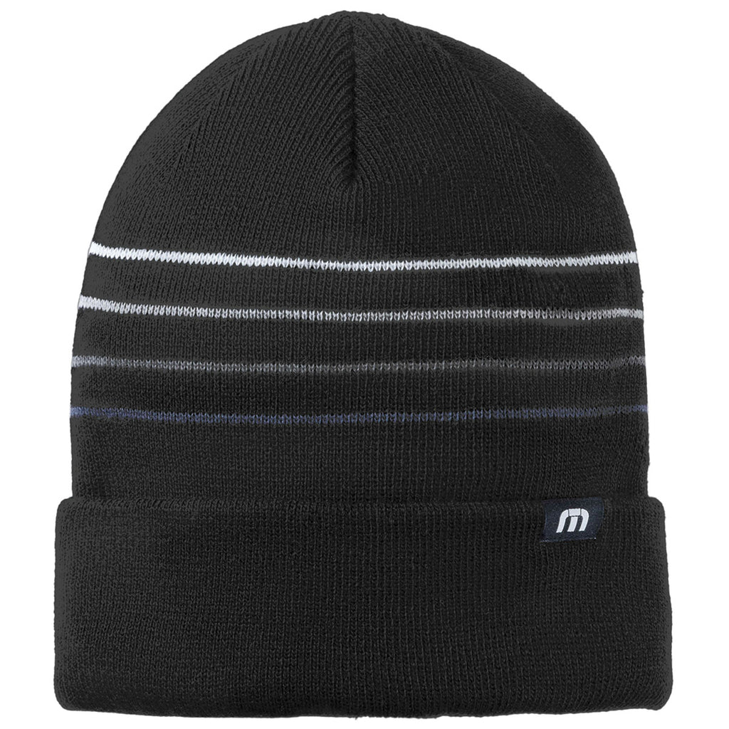 A subtle striped pattern adds visual interest to this comfortable TravisMathew Black Striped Cuffed Beanie. Made from a soft acrylic knit fabric, this cozy winter hat will ensure your company's custom logo or design is easy to spot even when temperatures start to cool.
