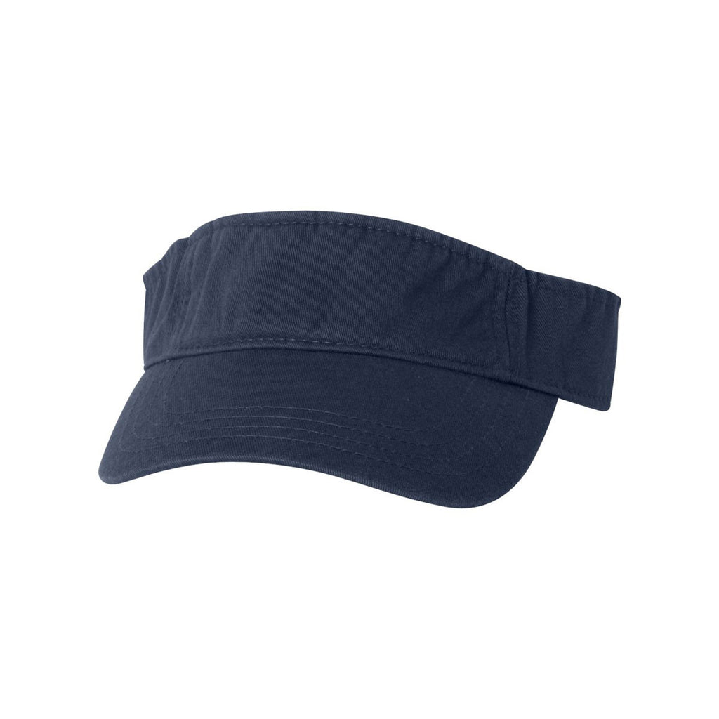 Bio-washed chino twill cotton defines the chic design of the custom logoed Valucap Navy Bio-Washed Visor. Super smooth cotton keeps you feeling energized all day long. The curved visor allows you to adjust the look of the cap to account for different sun angles during the course of company softball games. Attach the hook and loop closure to achieve the most comfortable fit at corporate picnics and when you work outdoors at home. Add your company logo on the large imprint area to get the word out about your products and services at business conferences.Highlights